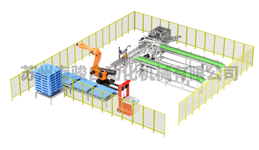 機器人自動上下料是指通過工業機器人實現工件在加工設備(如機床、注塑機等)與物料臺之間的自動化裝卸作業,是智能制造生產線的關鍵環節。該系統主要由工業機器人、視覺檢測系統、抓取夾具、物料輸送線及控制系統組成:機器人搭載專用夾具(如真空吸盤、機械爪)精準抓取工件,視覺系統對物料位置、姿態進行實時檢測與校正,確保上下料精度;控制系統協調機器人與加工設備的動作時序,實現全流程自動化。